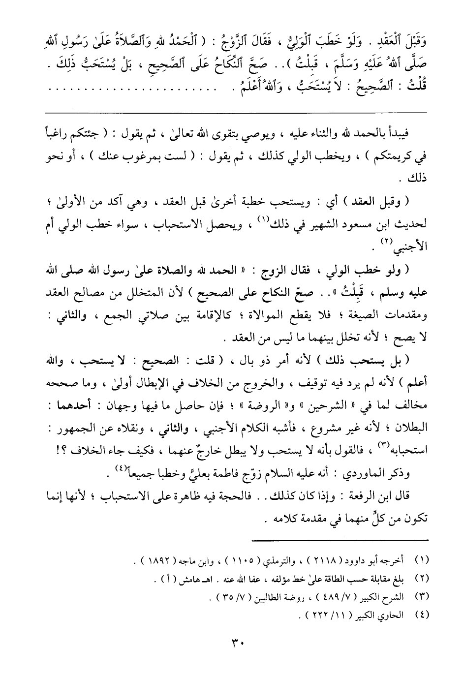 قال ابن الرفعة: وإذا كان كذلك .. فالحجة فيه ظاهرة على الاستحباب؛ لأنها إنما تكون من كلٍّ منهما في مقدمة كلامه.