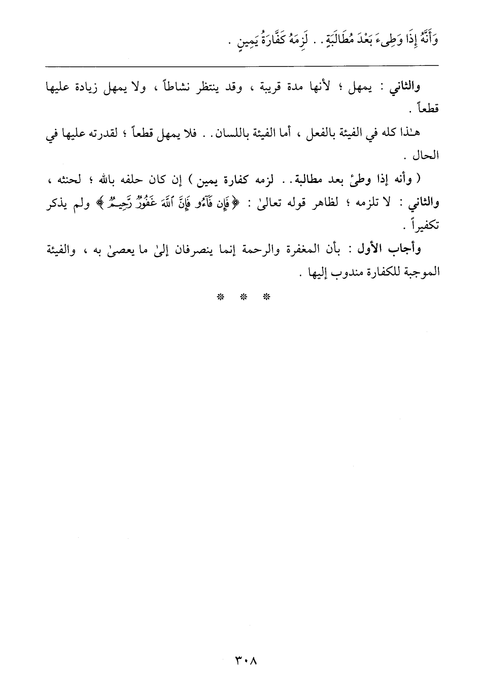 وأجاب الأول: بأن المغفرة والرحمة إنما ينصرفان إلى ما يعصى به، والفيئة الموجبة للكفارة مندوب إليها.