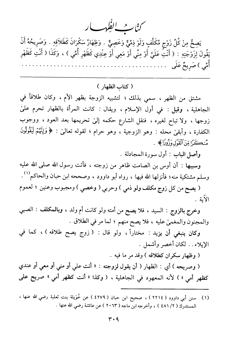 (١) سنن أبي داوود (٢٢١٤)، صحيح ابن حبان (٤٢٧٩) عن خُوَيلة بنت ثعلبة رضي الله عنها، المستدرك (٢/ ٤٨١)، وأخرجه ابن ماجه (٢٠٦٣) عن عائشة رضي الله عنها.