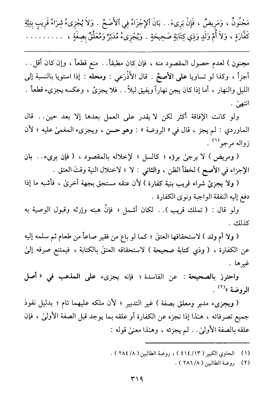 (١) الحاوي الكبير (١٣/ ٤١٤)، روضة الطالبين (٨/ ٢٨٤).