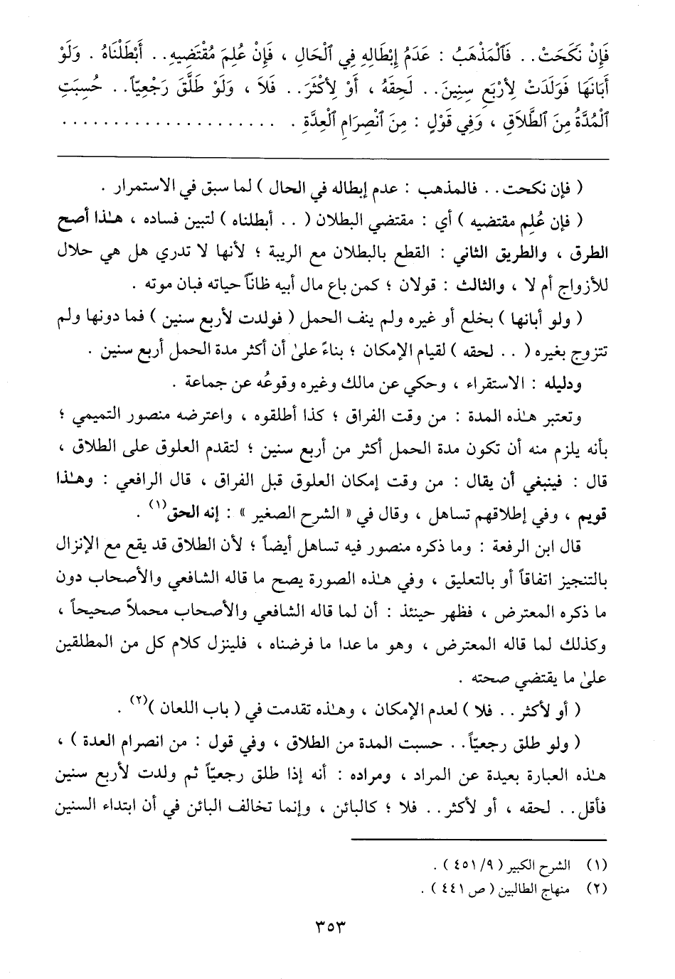 وتعتبر هذه المدة: من وقت الفراق؛ كذا أطلقوه، واعترضه منصور التميمي؛ بأنه يلزم منه أن تكون مدة الحمل أكثر من أربع سنين؛ لتقدم العلوق على الطلاق، قال: فينبغي أن يقال: من وقت إمكان العلوق قبل الفراق، قال الرافعي: وهذا قويم، وفي إطلاقهم تساهل، وقال في "الشرح الصغير": إنه الحق (١).