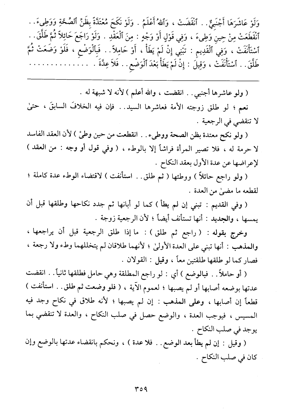 (أو حاملًا .. فبالوضع) أي: لو راجع المطلقة وهي حامل فطلقها ثانيًا .. انقضت عدتها بوضعه أصابها أو لم يصبها؛ لعموم الآية، (فلو وضعت ثم طلق .. استأنفت) قطعًا إن أصابها، وعلى المذهب: إن لم يصبها؛ لأنه طلاق في نكاح وجد فيه المسيس، فيوجب العدة، والوضع حصل في صلب النكاح، والعدة لا تنقضي بما يوجد في صلب النكاح.