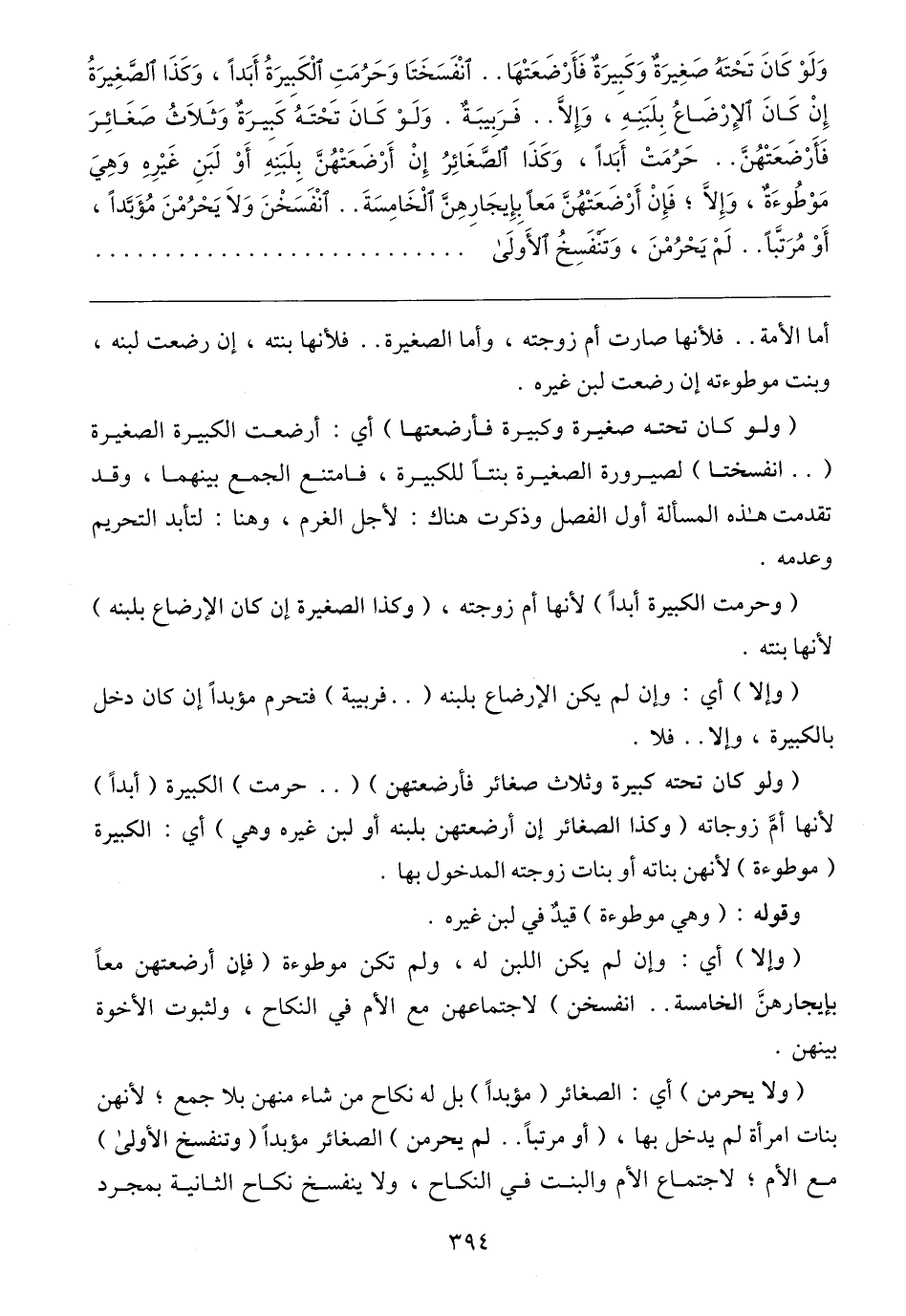 (ولا يحرمن) أي: الصغائر (مؤبدًا) بل له نكاح من شاء منهن بلا جمع؛ لأنهن بنات امرأة لم يدخل بها، (أو مرتبًا .. لم يحرمن) الصغائر مؤبدًا (وتنفسخ الأولى) مع الأم؛ لاجتماع الأم والبنت في النكاح، ولا ينفسخ نكاح الثانية بمجرد