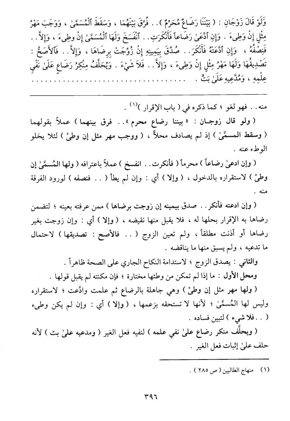 (وإن ادعى رضاعًا) محرمًا (فأنكرت .. انفسخ) عملًا باعترافه (ولها المُسمَّى إن وطئ) لاستقراره بالدخول، (وإلا) أي: وإن لم يطأ ( .. فنصفه) لورود الفرقة منه.