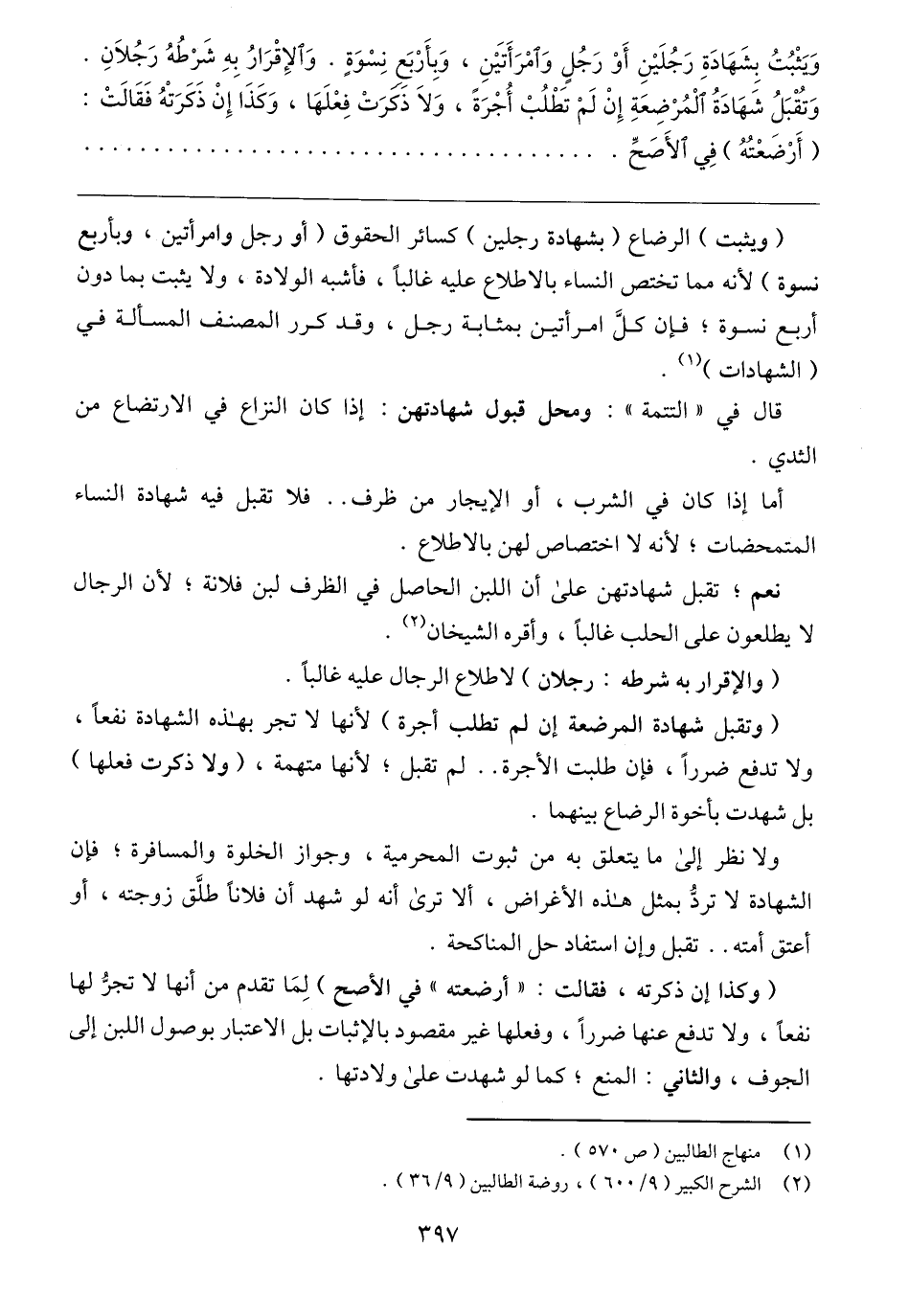 (٢) الشرح الكبير (٩/ ٦٠٠)، روضة الطالبين (٩/ ٣٦).