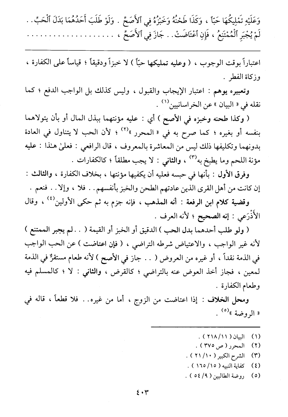 وفرق الأول: بأنها في حبسه فعليه أن يكفيها مؤنتها، بخلاف الكفارة، والثالث: إن كانت من أهل القرى الذين عادتهم الطحن والخبز بأنفسهم .. فلا، وإلا .. فنعم.