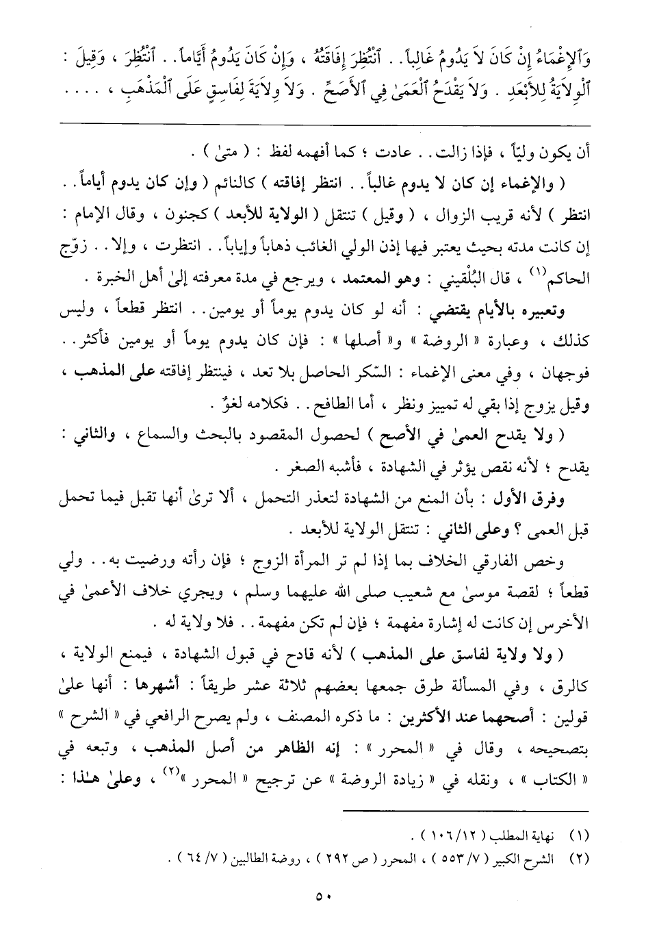 (٢) الشرح الكبير (٧/ ٥٥٣)، المحرر (ص ٢٩٢)، روضة الطالبين (٧/ ٦٤).