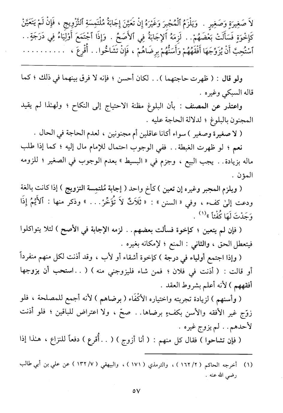 (١) أخرجه الحاكم (٢/ ١٦٢)، والترمذي (١٧١)، والبيهقي (٧/ ١٣٢) عن علي بن أبي طالب رضي الله عنه.