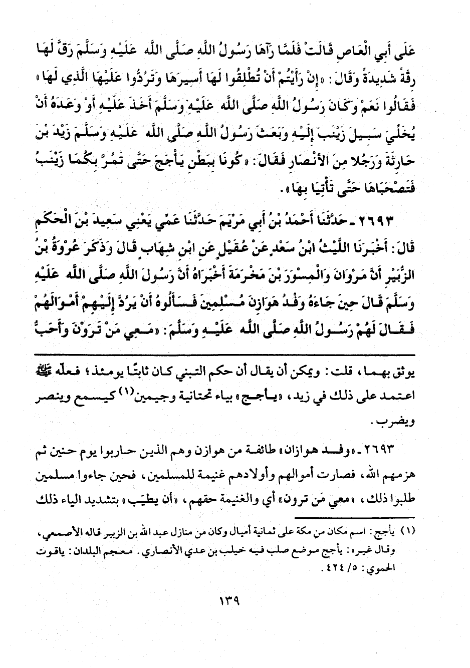 2693 - حَدَّثَنَا أَحْمَدُ بْنُ أَبِي مَرْيَمَ، حَدَّثَنَا عَمِّي يَعْنِي سَعِيدَ بْنَ الْحَكَمِ، قَالَ: أَخْبَرَنَا اللَّيْثُ بْنُ سَعْدٍ، عَنْ عُقَيْلٍ، عَنِ ابْنِ شِهَابٍ، قَالَ: وَذَكَرَ عُرْوَةُ بْنُ الزُّبَيْرِ، أَنَّ مَرْوَانَ، وَالْمِسْوَرَ بْنَ مَخْرَمَةَ أَخْبَرَاهُ، أَنَّ رَسُولَ اللَّهِ صَلَّى اللهُ عَلَيْهِ وَسَلَّمَ قَالَ حِينَ جَاءَهُ وَفْدُ هَوَازِنَ مُسْلِمِينَ، فَسَأَلُوهُ أَنْ يَرُدَّ إِلَيْهِمْ أَمْوَالَهُمْ، فَقَالَ لَهُمْ رَسُولُ اللَّهِ صَلَّى اللهُ عَلَيْهِ وَسَلَّمَ: «مَعِي مَنْ تَرَوْنَ، وَأَحَبُّ