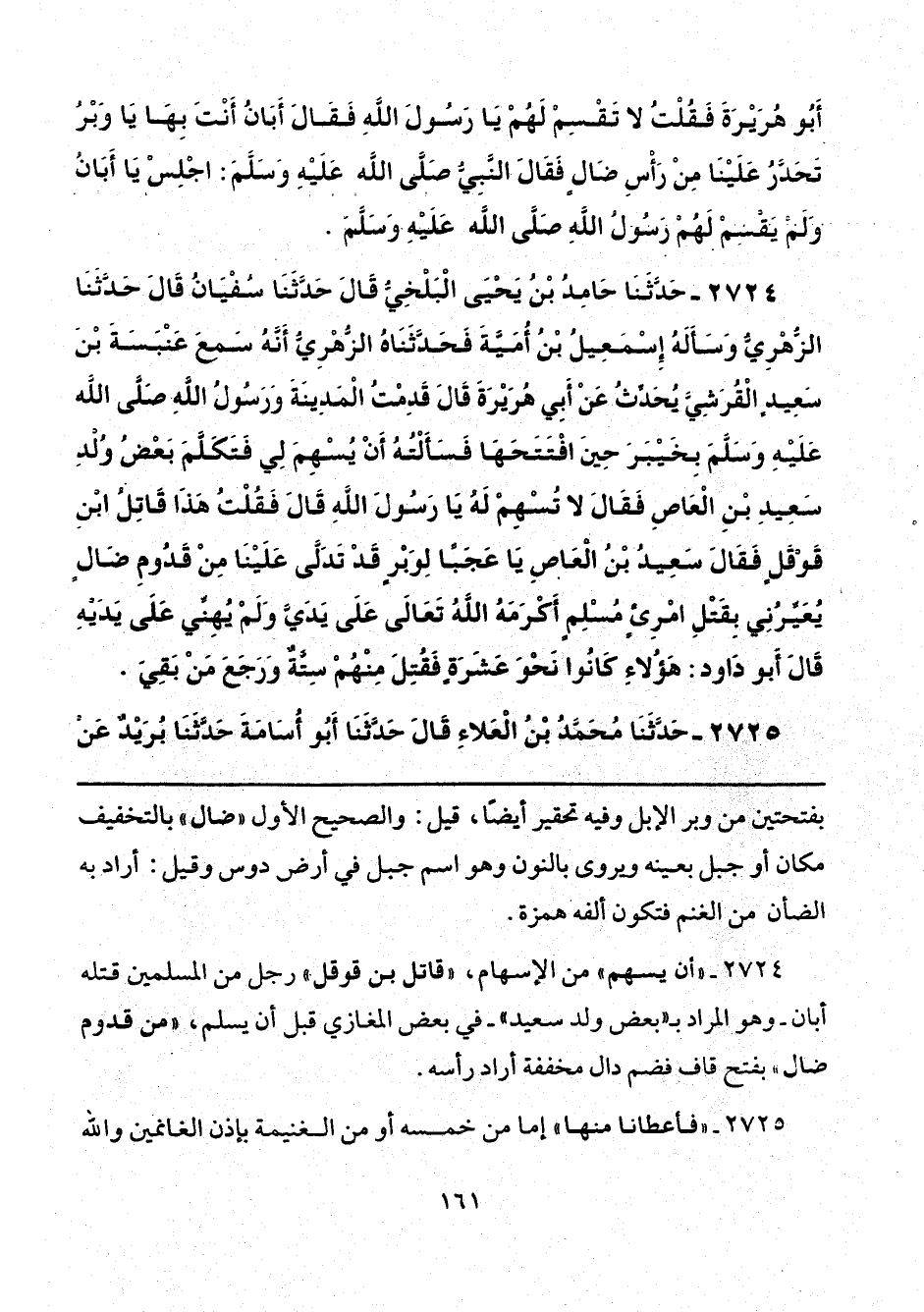 2724 - "أن يسهم" من الإسهام، "قاتل بن قوقل" رجل من المسلمين قتله أبان -وهو المراد بـ"بعض ولد سعيد" - في بعض المغازي قبل أن يسلم، "من قدوم ضال" بفتح قاف فضم دال مخففة أراد رأسه.