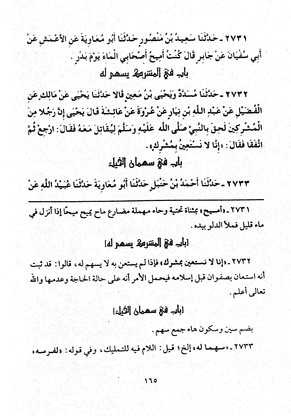2732 - "إنا لا نستعين بمشرك" فإذا لم يستعن به لا يسهم له، قالوا: قد ثبت أنه استعان بصفوان قبل إسلامه فيحمل الأمر أنه على حالة الحاجة وعدمها والله تعالى أعلم.