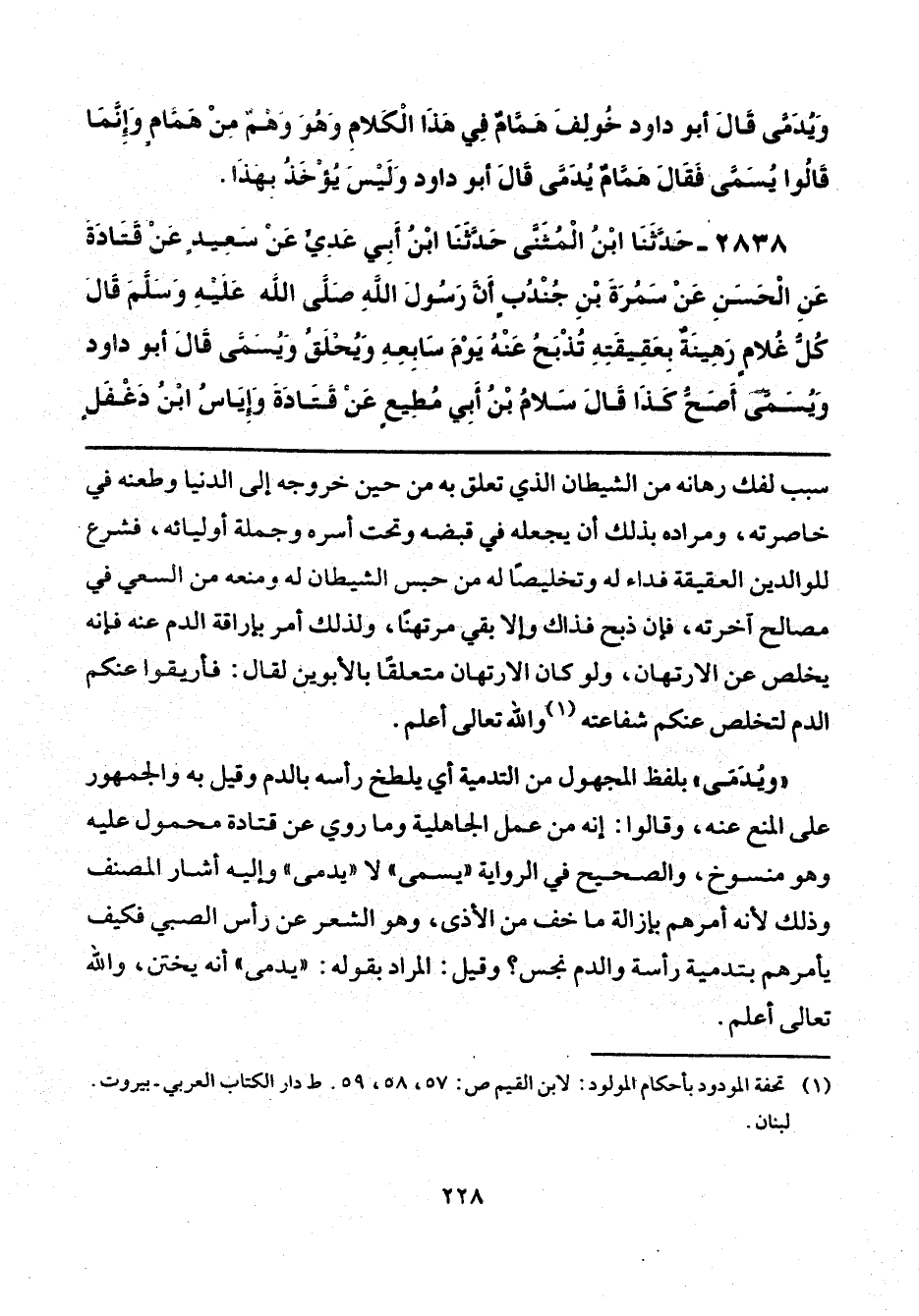 (¬1) تحفة المودود بأحكام المولود: لابن القيم ص: 57، 58، 59. ط دار الكتاب العربي- بيروت. لبنان.