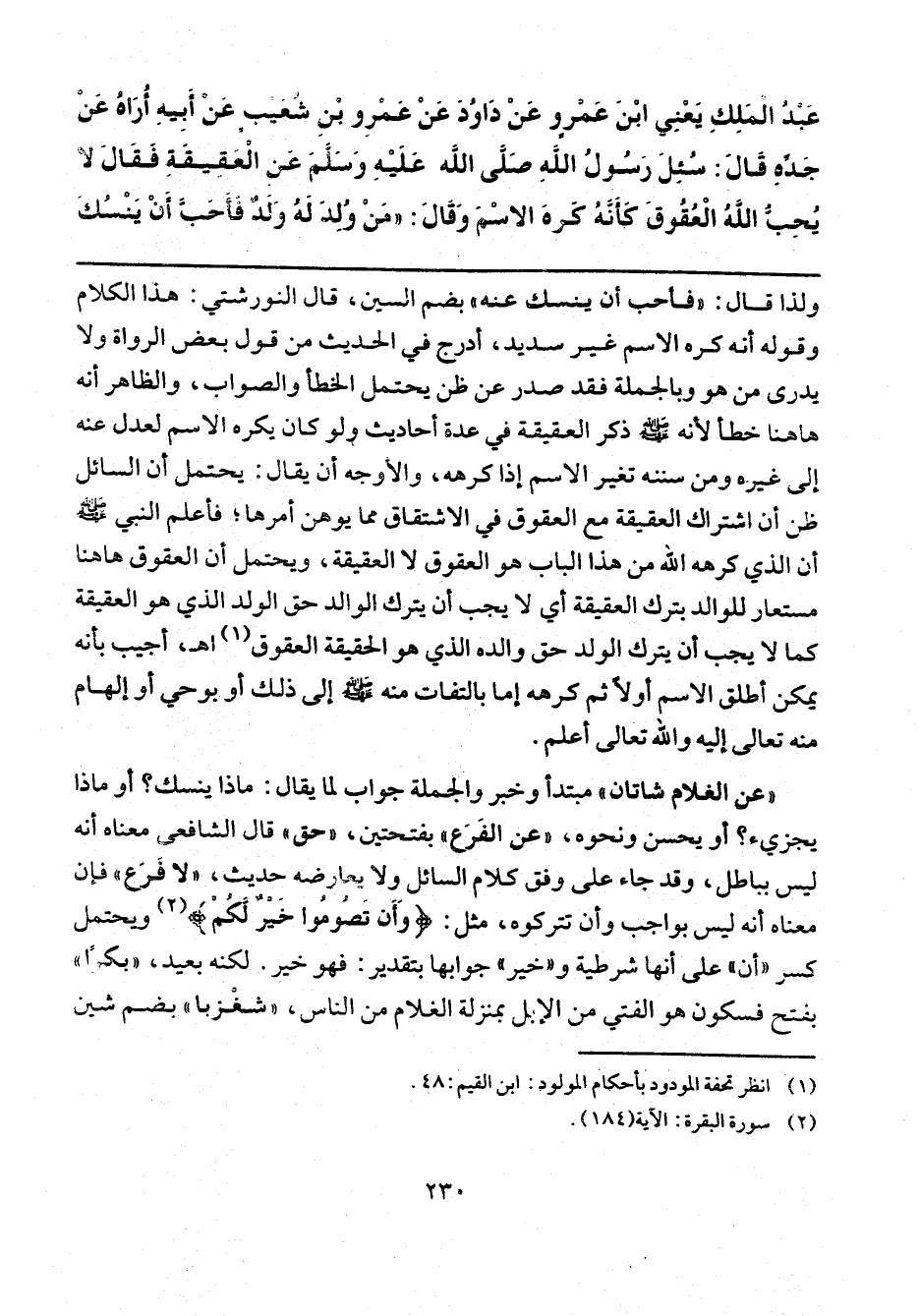 (¬1) انظر تحفة المودود بأحكام المولود: ابن القيم: 48.