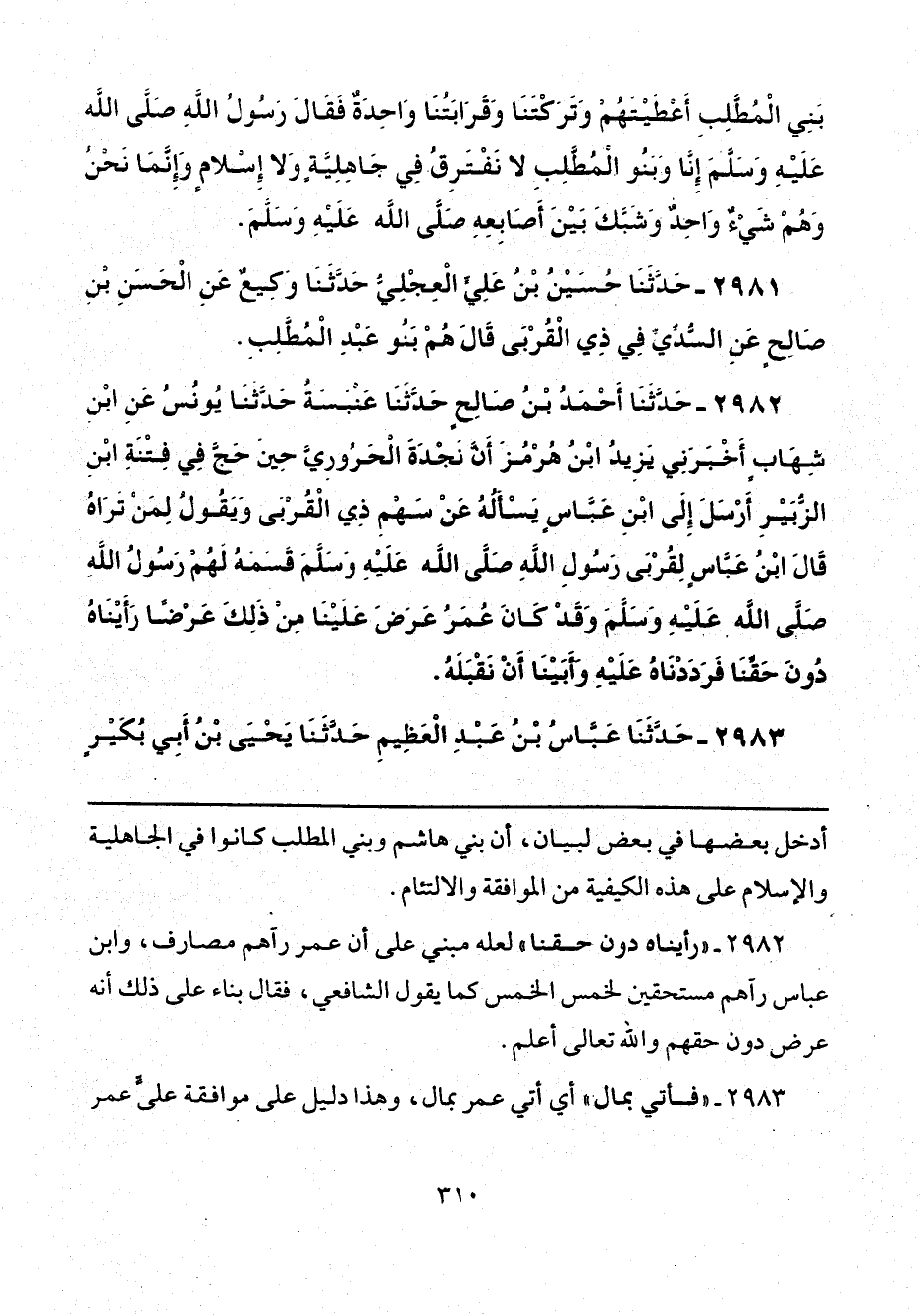 2982 - "رأيناه دون حقنا" لعله مبني على أن عمر رآهم مصارف، وابن عباس رآهم مستحقين لخمس الخمس كما يقول الشافعي، فقال بناء على ذلك أنه عرض دون حقهما والله تعالى أعلم.
