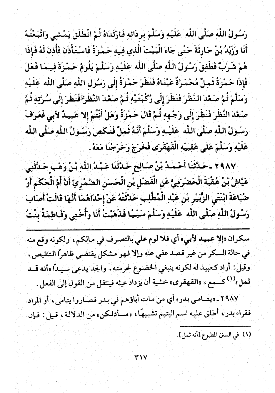 2987 - حَدَّثَنَا أَحْمَدُ بْنُ صَالِحٍ، حَدَّثَنَا عَبْدُ اللَّهِ بْنُ وَهْبٍ، حَدَّثَنِي عَيَّاشُ بْنُ عُقْبَةَ الْحَضْرَمِيُّ، عَنِ الْفَضْلِ بْنِ الْحَسَنِ الضَّمْرِيِّ، أَنَّ أُمَّ الْحَكَمِ، أَوْ ضُبَاعَةَ ابْنَتَيِ الزُّبَيْرِ بْنِ عَبْدِ الْمُطَّلِبِ، حَدَّثَتْهُ عَنْ إِحْدَاهُمَا، أَنَّهَا قَالَتْ: أَصَابَ رَسُولُ اللَّهِ صَلَّى اللهُ عَلَيْهِ وَسَلَّمَ سَبْيًا، فَذَهَبْتُ أَنَا وَأُخْتِي، وَفَاطِمَةُ بِنْتُ