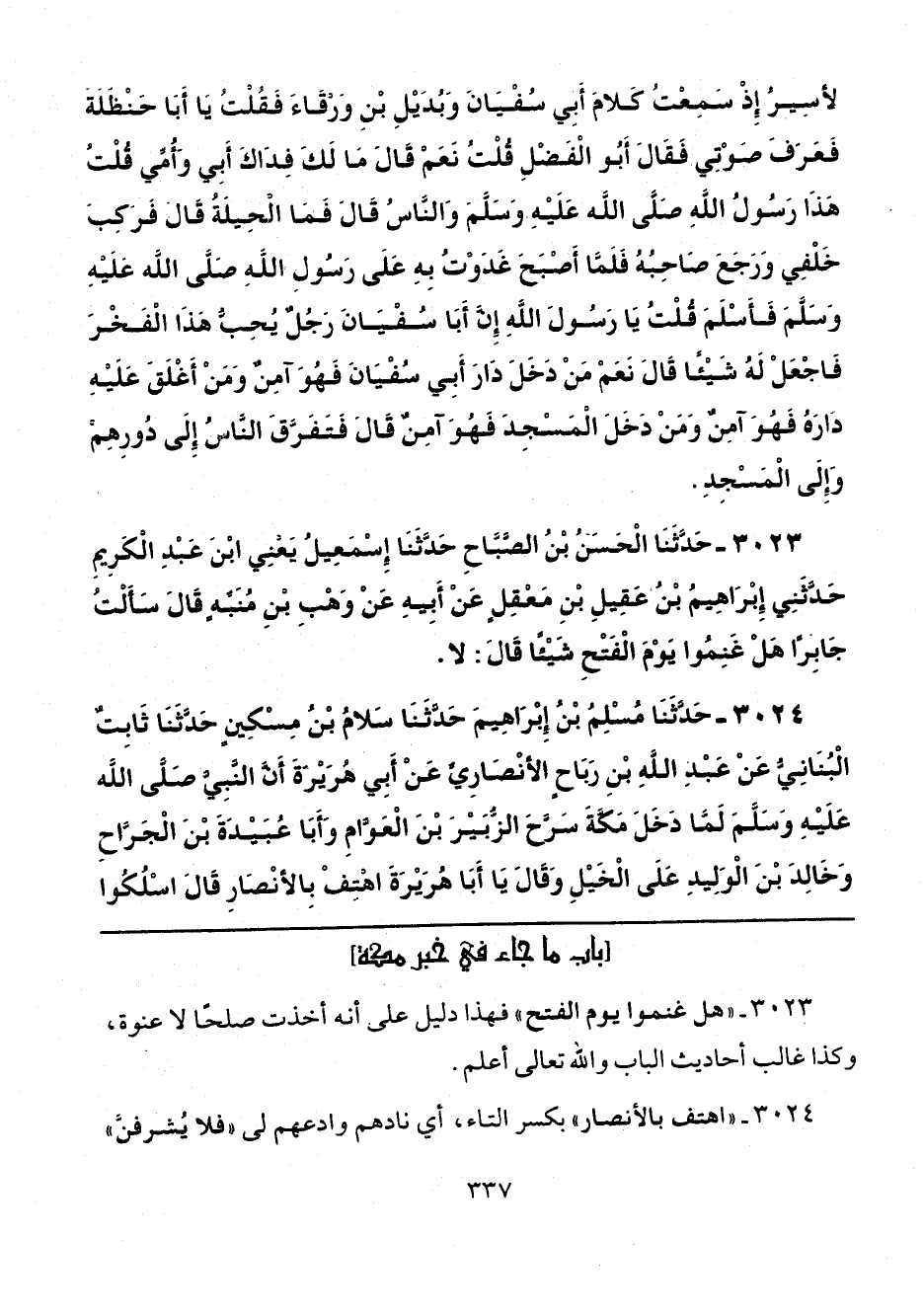 3023 - حَدَّثَنَا الْحَسَنُ بْنُ الصَّبَّاحِ، حَدَّثَنَا إِسْمَاعِيلُ يَعْنِي ابْنَ عَبْدِ الْكَرِيمِ، حَدَّثَنِي إِبْرَاهِيمُ بْنُ عَقِيلِ بْنِ مَعْقِلٍ، عَنْ أَبِيهِ، عَنْ وَهْبِ بْنِ مُنَبِّهٍ، قَالَ: سَأَلْتُ جَابِرًا: هَلْ غَنِمُوا يَوْمَ الْفَتْحِ شَيْئًا؟ قَالَ: «لَا».