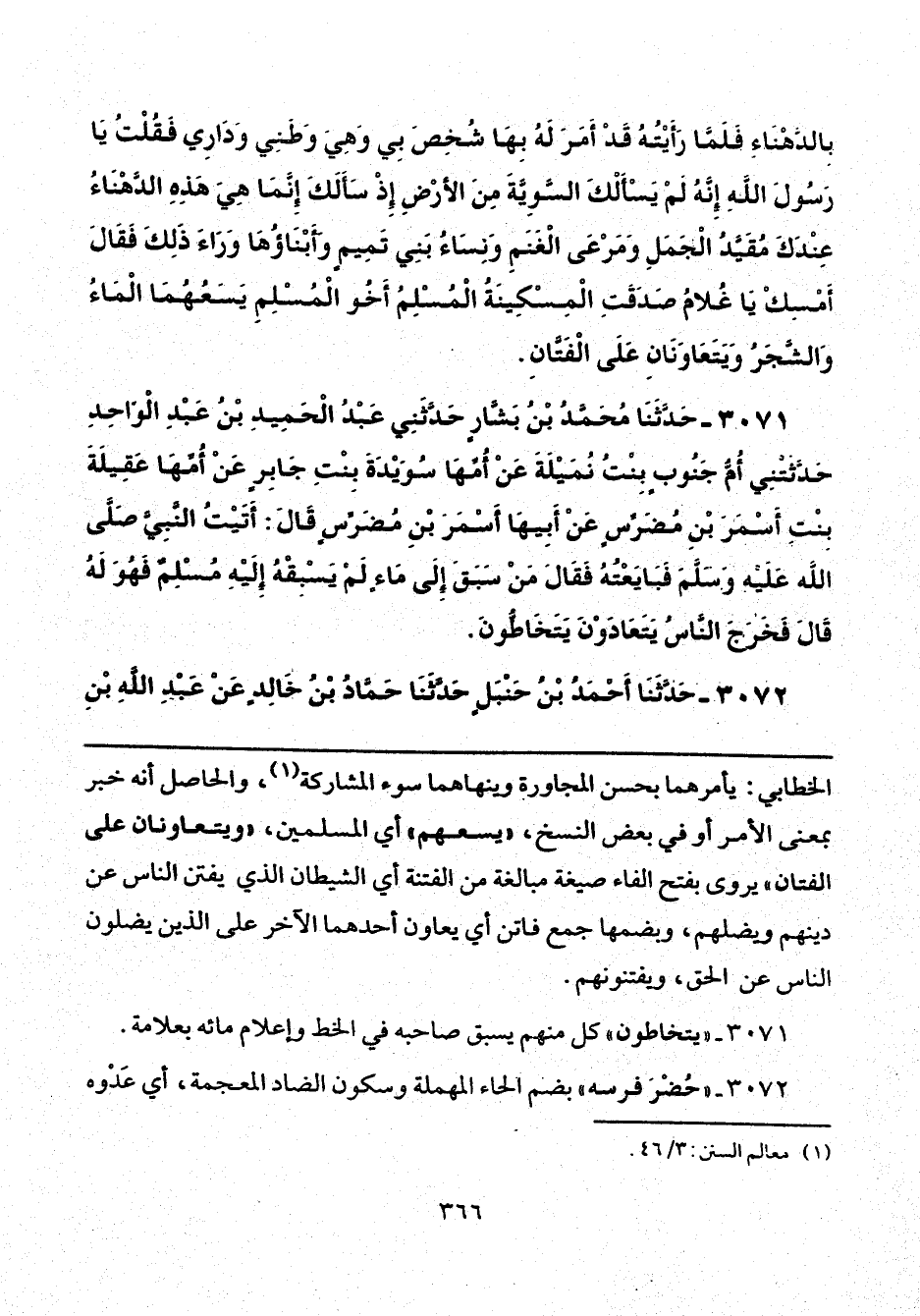 3072 - حَدَّثَنَا أَحْمَدُ بْنُ حَنْبَلٍ، حَدَّثَنَا حَمَّادُ بْنُ خَالِدٍ، عَنْ عَبْدِ اللَّهِ بْنِ