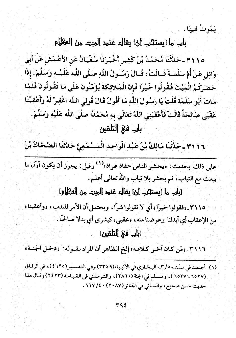 3115 - "فقولوا خيرًا" أي لا تقولوا شرًّا، ويحتمل أن الأمر للندب، "وأعقبنا" من الإعقاب أي أبدلنا وعوضنا منه، "عقبي" كبشرى أي بدلا صالحًا.