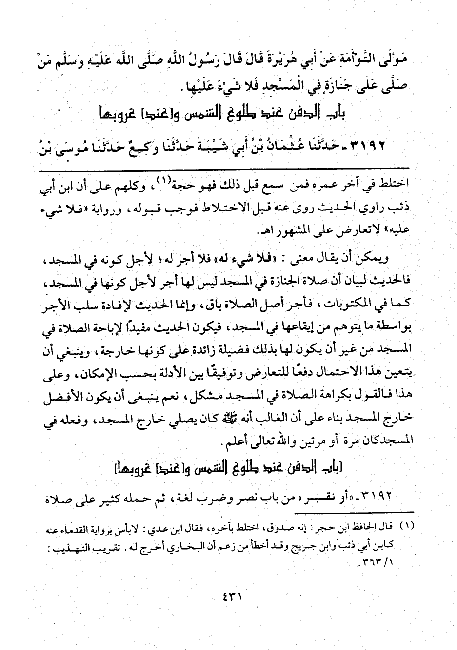 بَابُ الدَّفْنِ عِنْدَ طُلُوعِ الشَّمْسِ وَ [عِنْدَ] غُرُوبِهَا