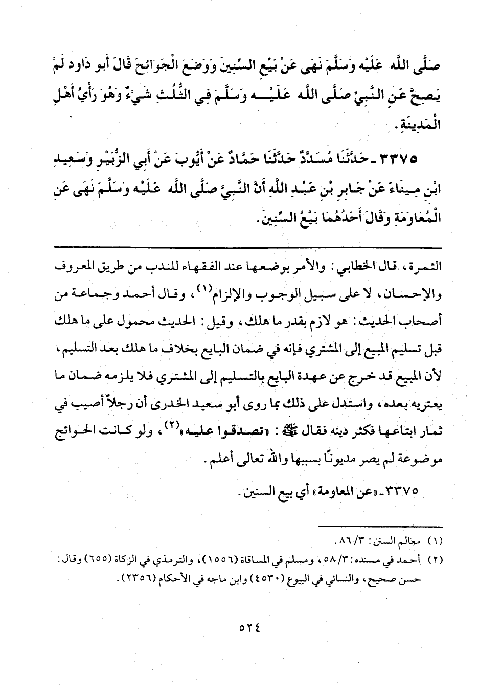 3375 - "عن المعاومة" أي بيع السنين.