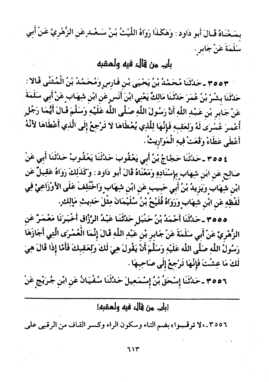 3556 - "لا ترقبوا" بضم التاء وسكون الراء وكسر القاف من الرقبى على