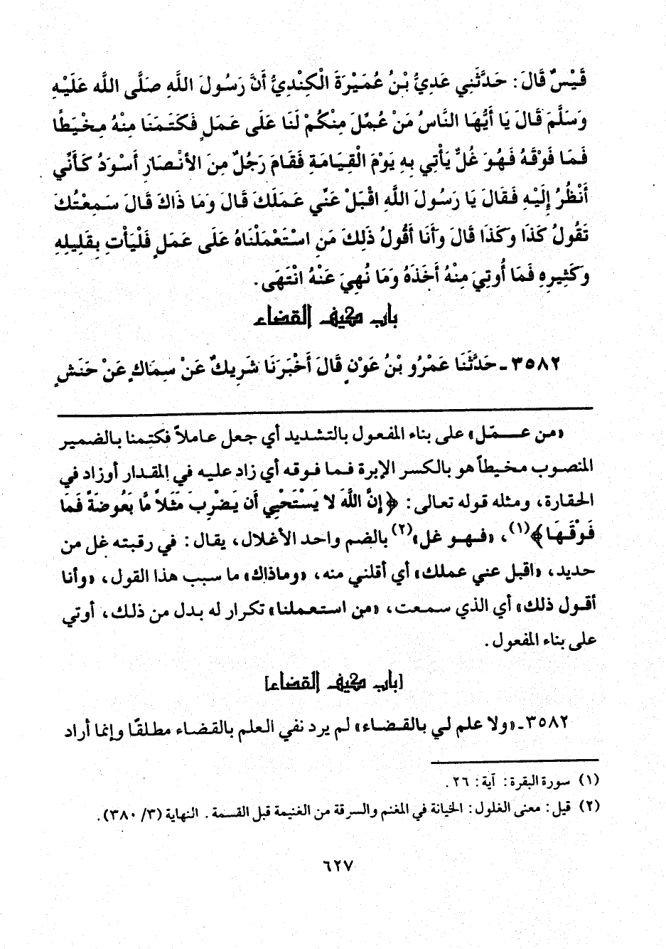 "من عمّل" على بناء المفعول بالتشديد أي جعل عاملًا فكتمنا بالضمير المنصوب مخيطًا هو بالكسر الإبرة فما فوقه أي زاد عليه في المقدار أو زاد في الحقارة، ومثله قوله تعالى: {إِنَّ اللَّهَ لَا يَسْتَحْيِي أَنْ يَضْرِبَ مَثَلًا مَا بَعُوضَةً فَمَا فَوْقَهَا} (¬1)، "فهو غل" (¬2) بالضم واحد الأغلال، يقال: في رقبته غل من حديد، "اقبل عني عملك" أي أقلني منه، "وما ذاك" ما سبب هذا القول، "وأنا أقول ذلك" أي الذي سمعت، "من استعملنا" تكرار له بدل من ذلك، أوتي على بناء المفعول.