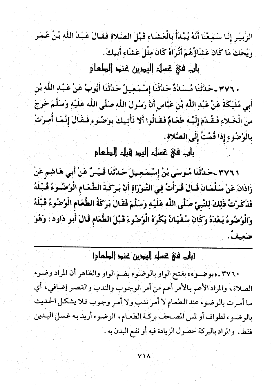 الزُّبَيْرِ: إِنَّا سَمِعْنَا أَنَّهُ، يُبْدَأُ بِالْعَشَاءِ قَبْلَ الصَّلَاةِ، فَقَالَ عَبْدُ اللَّهِ بْنُ عُمَرَ: «وَيْحَكَ مَا كَانَ عَشَاؤُهُمْ أَتُرَاهُ كَانَ مِثْلَ عَشَاءِ أَبِيكَ».