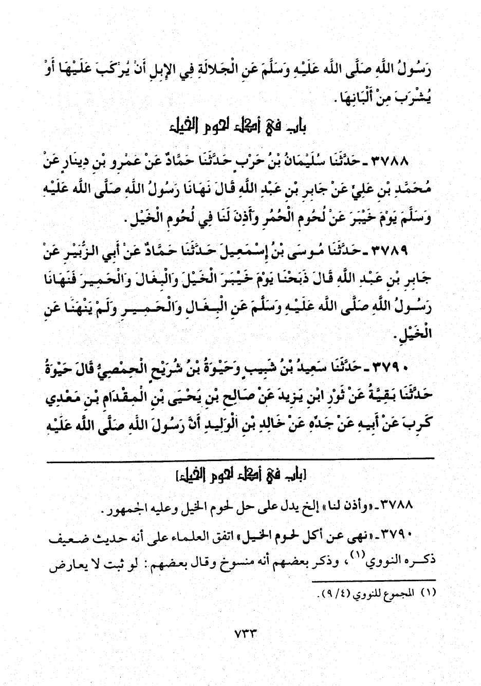 3788 - "وأذن لنا" إلخ يدل على حل لحوم الخيل وعليه الجمهور.