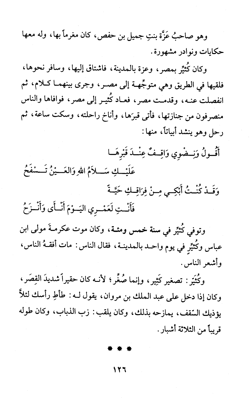 وكُثَيِّر: تصغير كَثِير، وإنما صُغِّر؛ لأنه كان حقيرًا شديدَ القِصَر، وكان إذا دخل على عبد الملك بن مروان، يقول له: طأطِ رأسك لئلَّا يؤذيك السّقف، يمازحه بذلك، وكان يلقب: زب الذباب، وكان طوله قريبًا من الثلاثة أشبار.