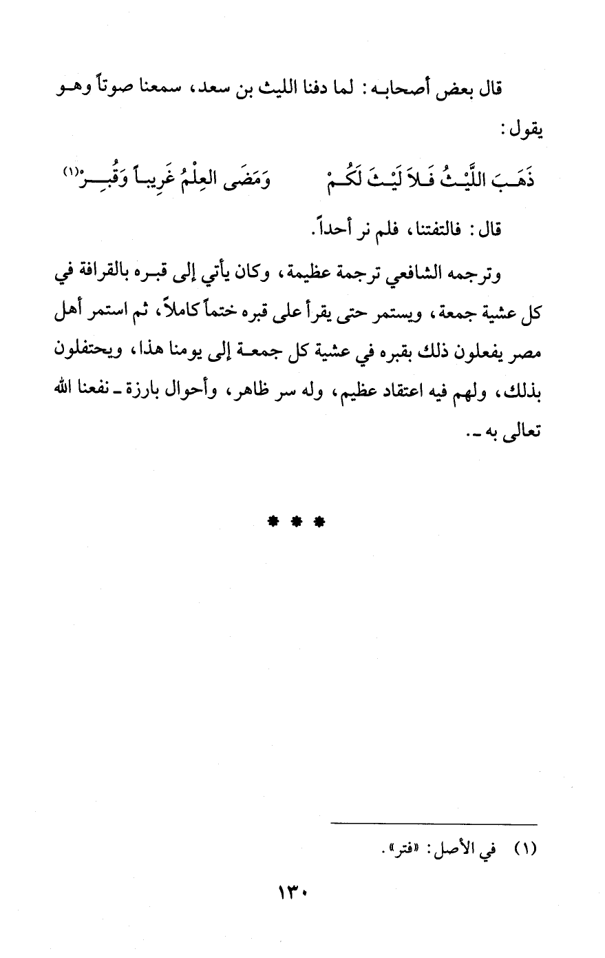 ذَهَبَ اللَّيْثُ فَلَا لَيْثَ لَكُمْ ... وَمَضَى العِلْمُ غَرِيبًا وَقُبِرْ (¬1)