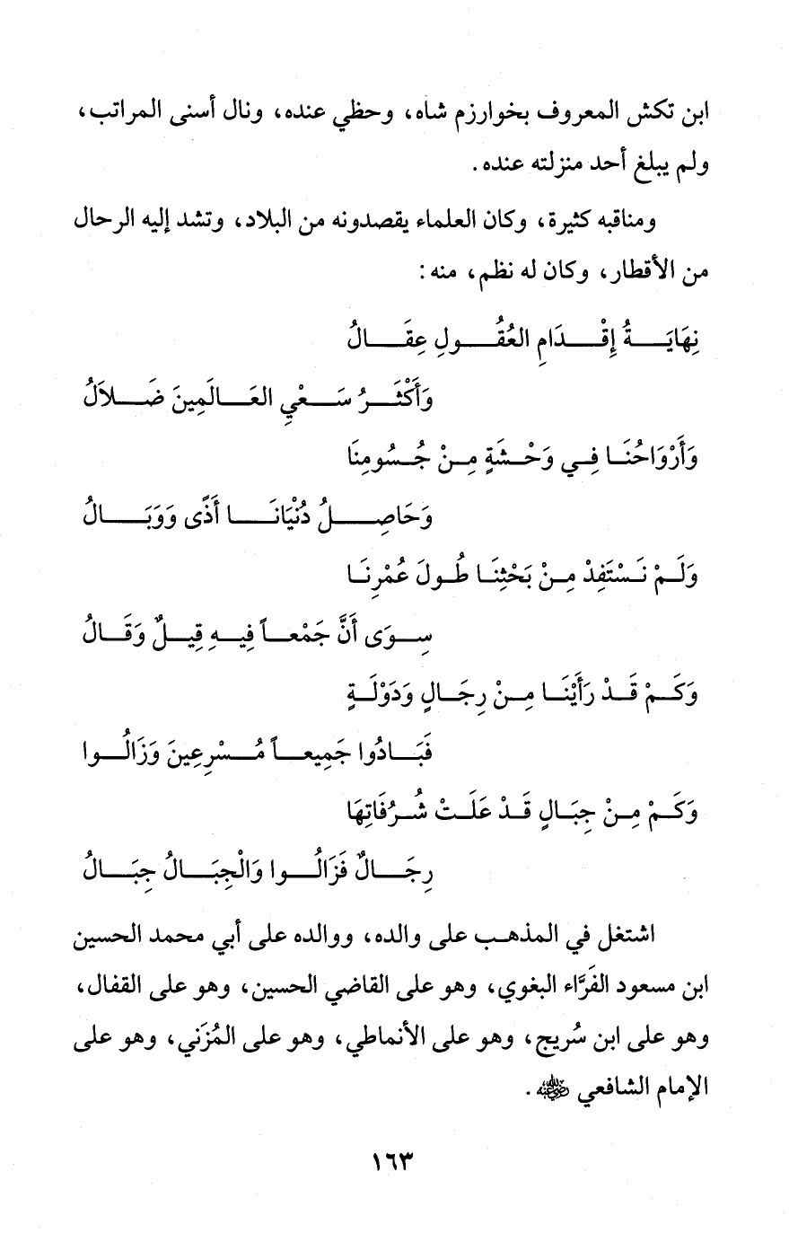 نِهَايَةُ إِقْدَامِ العُقُولِ عِقَالُ ... وَأَكْثَرُ سَعْيِ العَالَمِينَ ضَلَالُ