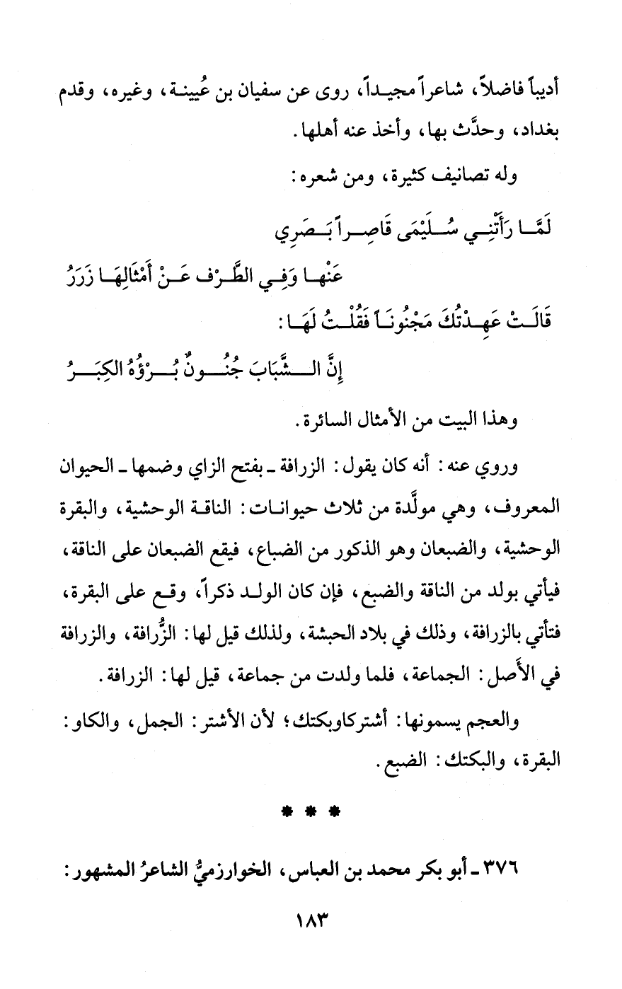 376 - أبو بكر محمد بن العباس، الخوارزميُّ الشاعرُ المشهور: