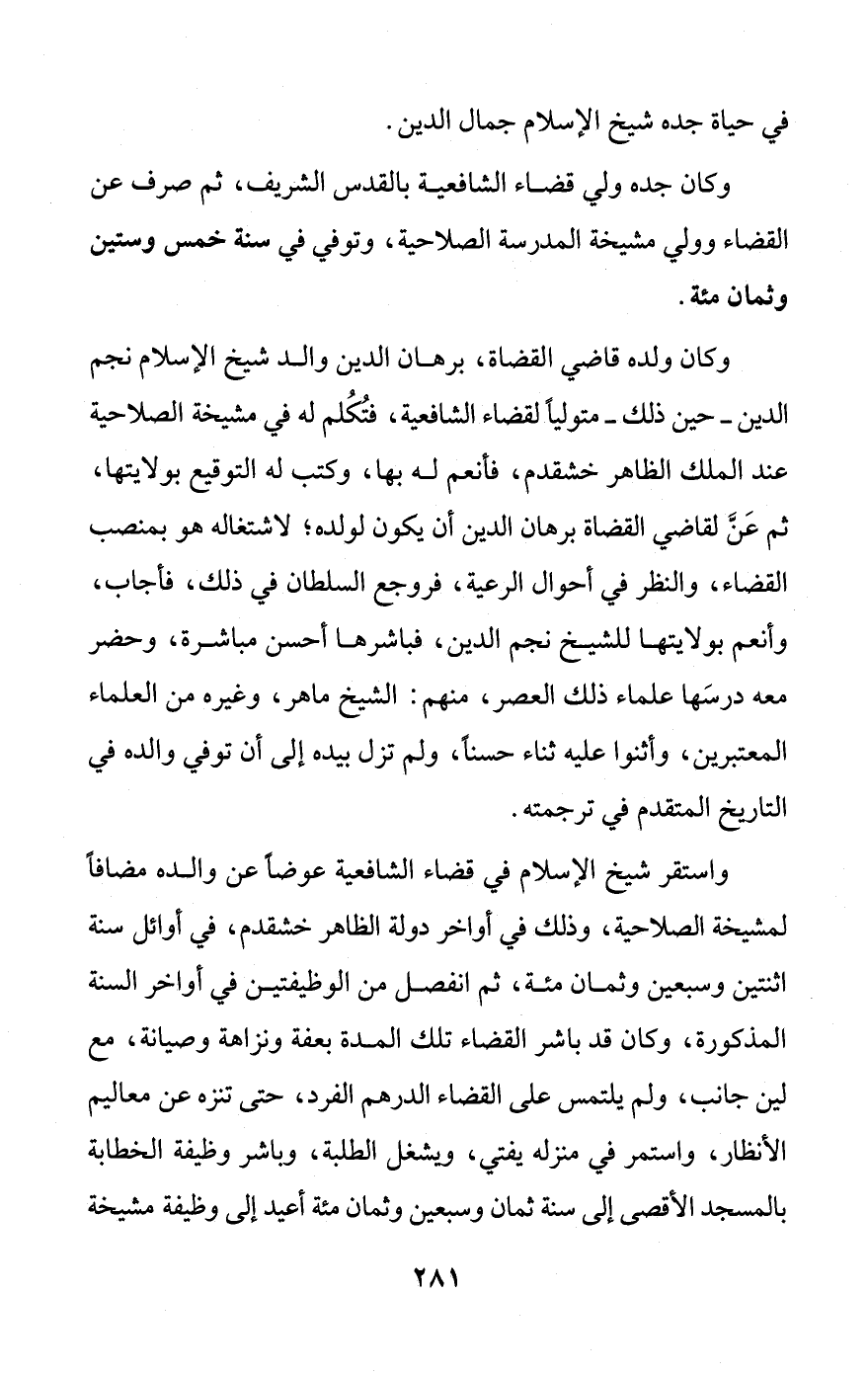 وكان جده ولي قضاء الشافعية بالقدس الشريف، ثم صرف عن القضاء وولي مشيخة المدرسة الصلاحية، وتوفي في سنة خمس وستين وثمان مئة.