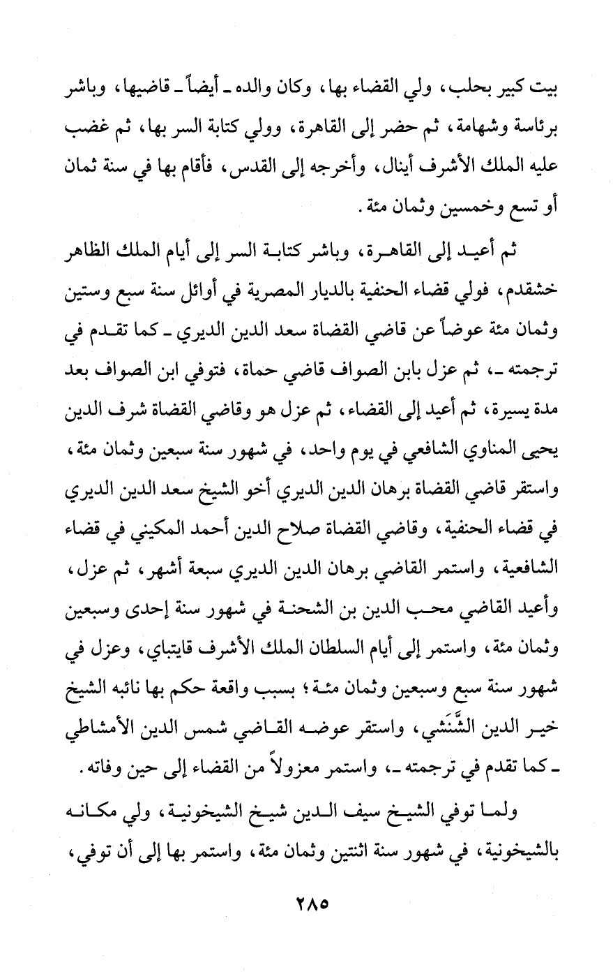 بيت كبير بحلب، ولي القضاء بها، وكان والده - أيضاً - قاضيها، وباشر برئاسة وشهامة، ثم حضر إلى القاهرة، وولي كتابة السر بها، ثم غضب عليه الملك الأشرف أينال، وأخرجه إلى القدس، فأقام بها في سنة ثمان أو تسع وخمسين وثمان مئة.