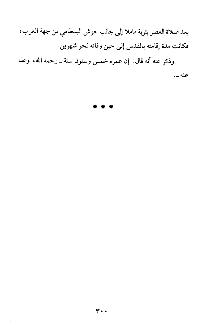 بعد صلاة العصر بتربة ماملا إلى جانب حوش البسطامي من جهة الغرب، فكانت مدة إقامته بالقدس إلى حين وفاته نحو شهرين.