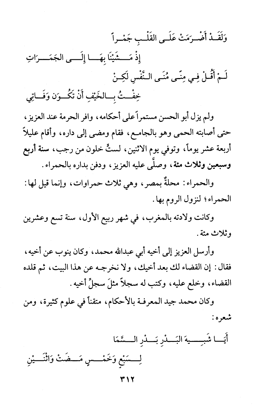 وَلَقَدْ أَضْرَمَتْ عَلَى القَلْبِ جَمْراً ... إِذْ مَشَيْنَا بِهَا إِلَى الجَمَرَاتِ