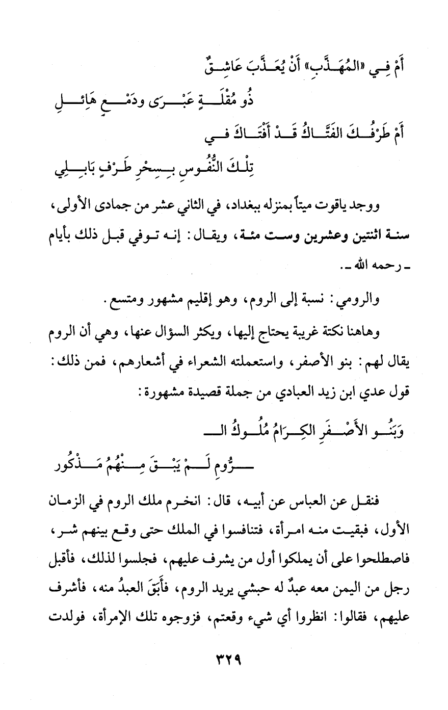 وهاهنا نكتة غريبة يحتاج إليها، ويكثر السؤال عنها، وهي أن الروم يقال لهم: بنو الأصفر، واستعملته الشعراء في أشعارهم، فمن ذلك: قول عدي ابن زيد العبادي من جملة قصيدة مشهورة:
