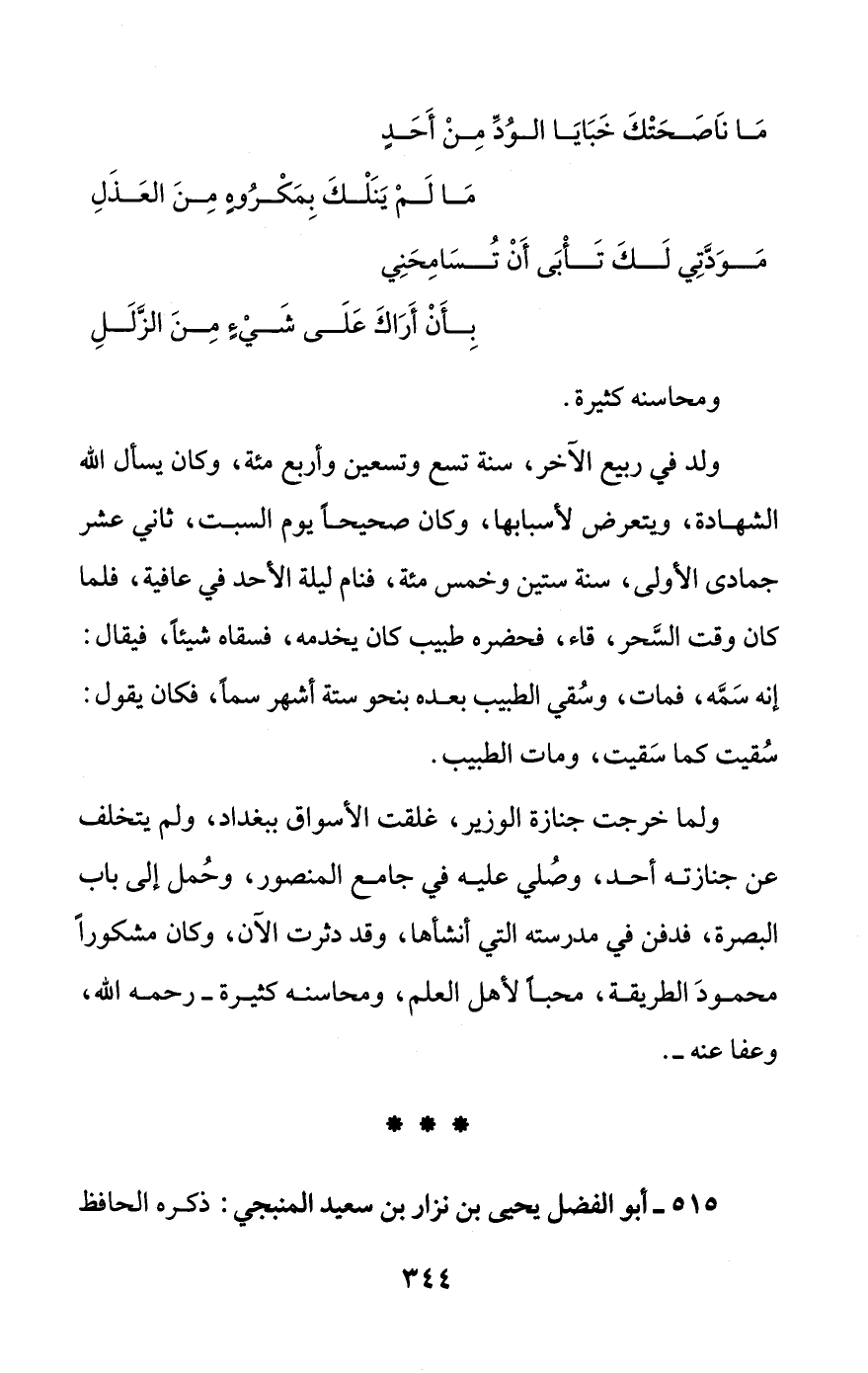 515 - أبو الفضل يحيى بن نزار بن سعيد المنبجي: ذكره الحافظ