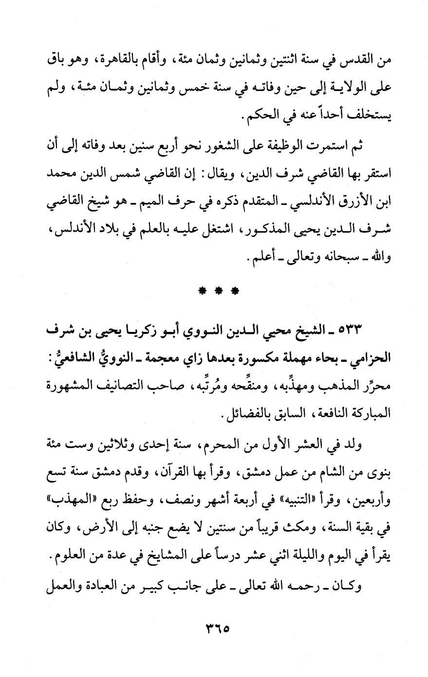 533 - الشيخ محيي الدين النووي - رَحِمَهُ اللهُ - أبو زكريا يحيى بن شرف الحزامي - بحاء مهملة مكسورة بعدها زاي معجمة - النوويُّ الشافعيُّ: محرّر المذهب ومهذِّبه، ومنقِّحه ومُرتِّبه، صاحب التصانيف المشهورة المباركة النافعة، السابق بالفضائل.