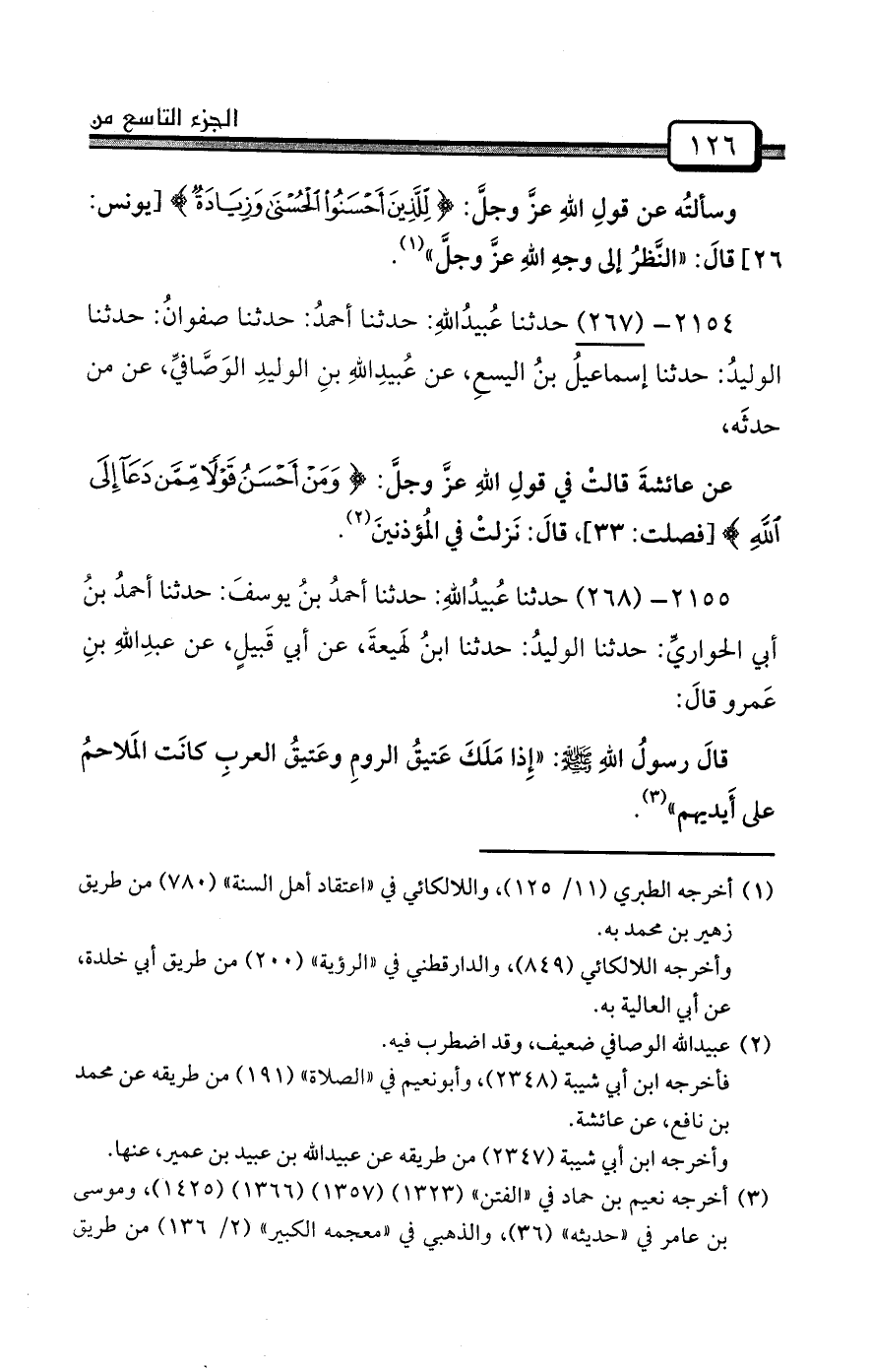 2155- (268) حدثنا عُبيدُاللهِ: حدثنا أحمدُ بنُ يوسفَ: حدثنا أحمدُ بنُ أبي الحواريِّ: حدثنا الوليدُ: حدثنا ابنُ لَهيعةَ، عن أبي قَبيلٍ، عن عبدِاللهِ بنِ عَمرو قالَ:
