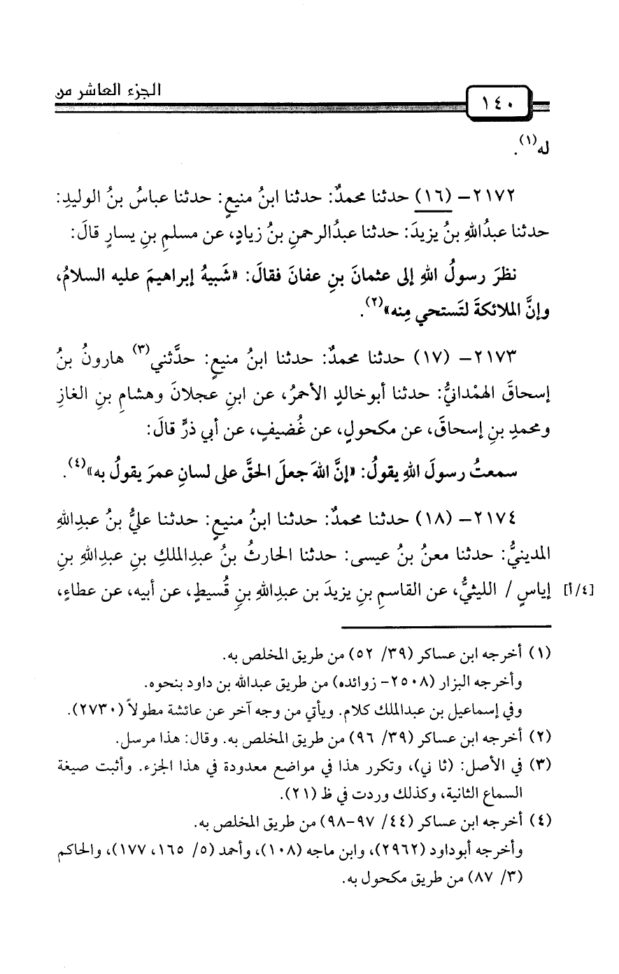 2173- (17) حدثنا محمدٌ: حدثنا ابنُ منيعٍ: حدَّثني (¬3) هارونُ بنُ إسحاقَ الهمْدانيُّ: حدثنا أبوخالدٍ الأحمرُ، عن ابنِ عجلانَ وهشامِ بنِ الغازِ ومحمدِ بنِ إسحاقَ، عن مكحولٍ، عن غُضيفٍ، عن أبي ذرٍّ قالَ: