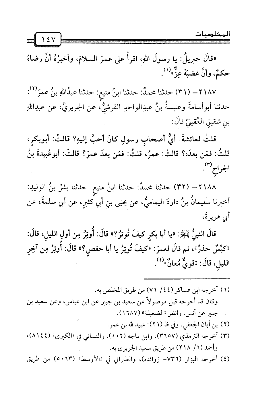 2188- (32) حدثنا محمدٌ: حدثنا ابنُ منيعٍ: حدثنا بشرُ بنُ الوليدِ: أخبرنا سليمانُ بنُ داودَ اليماميُّ، عن يحيى بنِ أبي كثيرٍ، عن أبي سلمةَ، عن أبي هريرةَ،