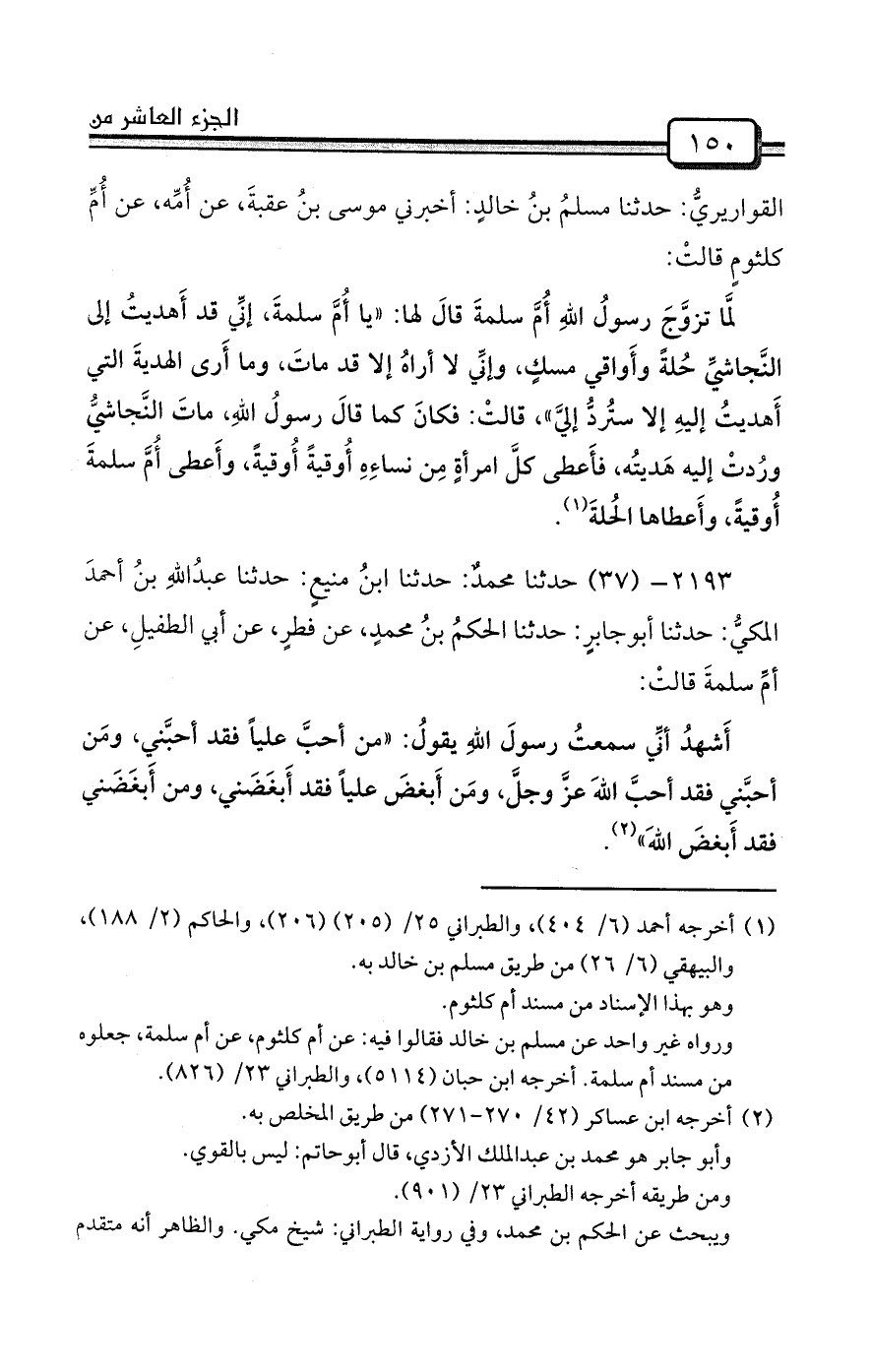(¬1) أخرجه أحمد (6/ 404) ، والطبراني 25/ (205) (206) ، والحاكم (2/ 188) ، والبيهقي (6/ 26) من طريق مسلم بن خالد به.