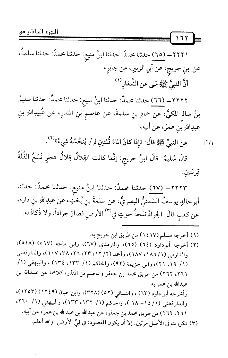 2222- (66) حدثنا محمدٌ: حدثنا ابنُ منيعٍ: حدثنا محمدٌ: حدثنا سليمُ بنُ سالمٍ المكيُّ، عن حمادِ بنِ سلمةَ، عن عاصمِ بنِ المنذرِ، عن عُبيدِاللهِ بنِ عبدِاللهِ بنِ عمرَ، عن أبيه،