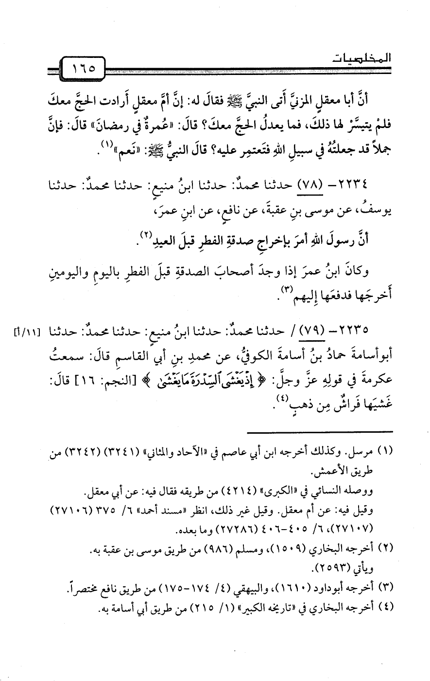 2234- (78) حدثنا محمدٌ: حدثنا ابنُ منيعٍ: حدثنا محمدٌ: حدثنا يوسفُ، عن موسى بنِ عقبةَ، عن نافعٍ، عن ابنِ عمرَ،