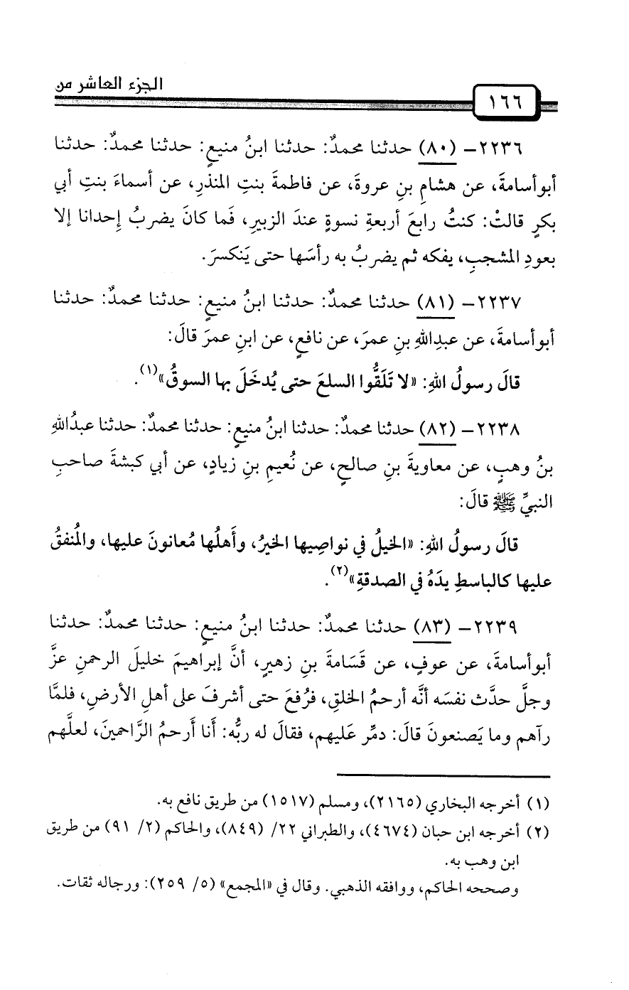 2237- (81) حدثنا محمدٌ: حدثنا ابنُ منيعٍ: حدثنا محمدٌ: حدثنا أبوأسامةَ، عن عبدِاللهِ بنِ عمرَ، عن نافعٍ، عن ابنِ عمرَ قالَ: