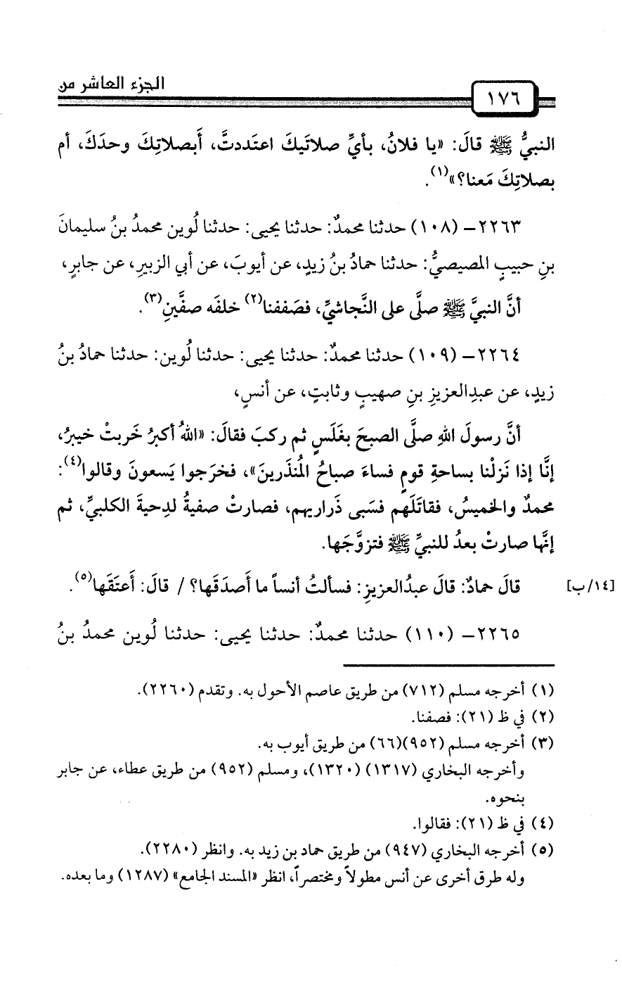 2264- (109) حدثنا محمدٌ: حدثنا يحيى: حدثنا لُوين: حدثنا حمادُ بنُ زيدٍ، عن عبدِالعزيزِ بنِ صهيبٍ وثابتٍ، عن أنسٍ،