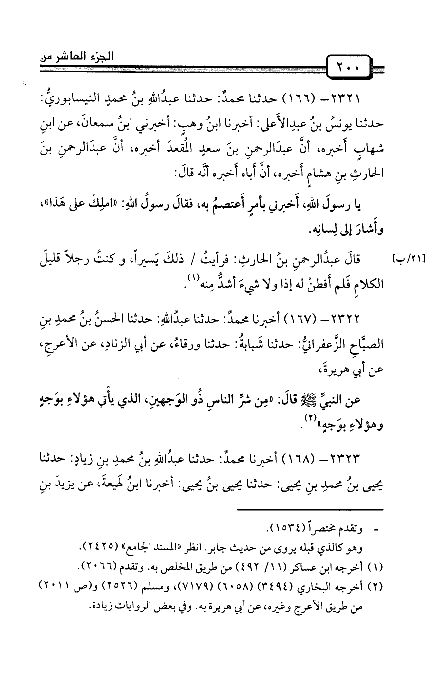 (¬2) أخرجه البخاري (3494) (6058) (7179) ، ومسلم (2526) و (ص 2011) من طريق الأعرج وغيره، عن أبي هريرة به. وفي بعض الروايات زيادة.