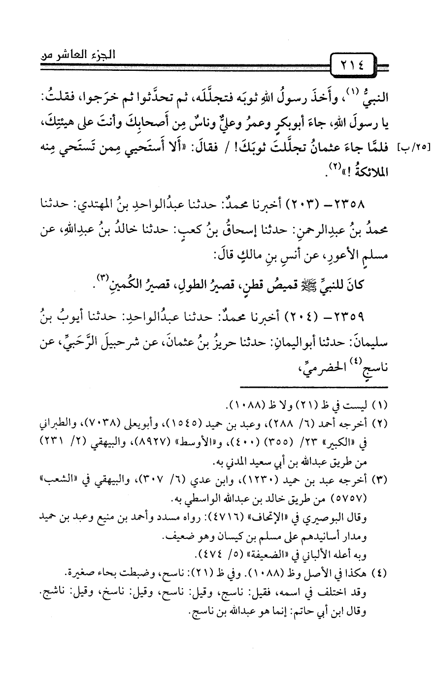 2359- (204) أخبرنا محمدٌ: حدثنا عبدُالواحدِ: حدثنا أيوبُ بنُ سليمانَ: حدثنا أبواليمانِ: حدثنا حريزُ بنُ عثمانَ، عن شرحبيلَ الرَّحَبيِّ، عن ناسجٍ (¬4) الحضرميِّ،