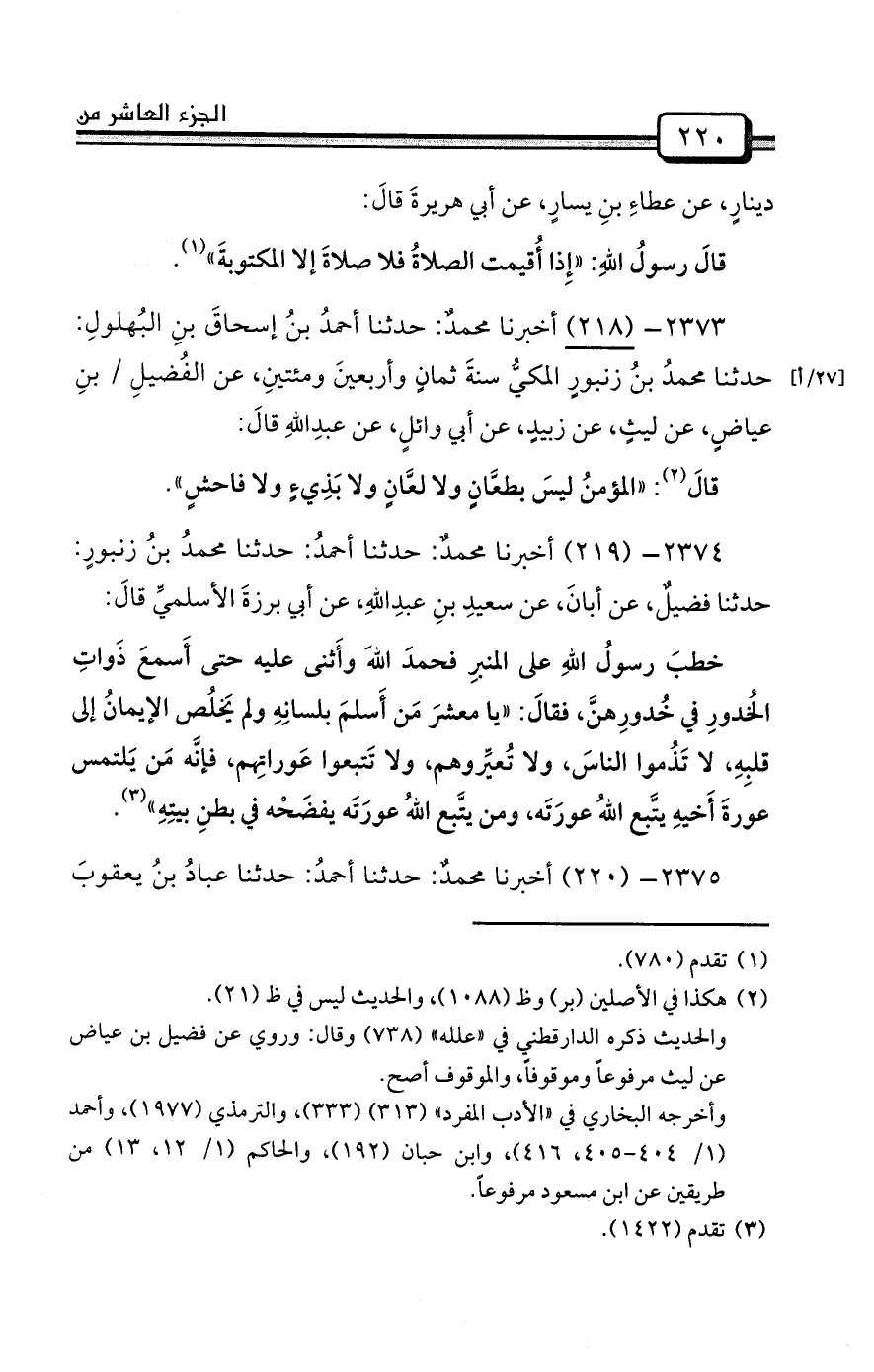 2375- (220) أخبرنا محمدٌ: حدثنا أحمدُ: حدثنا عبادُ بنُ يعقوبَ